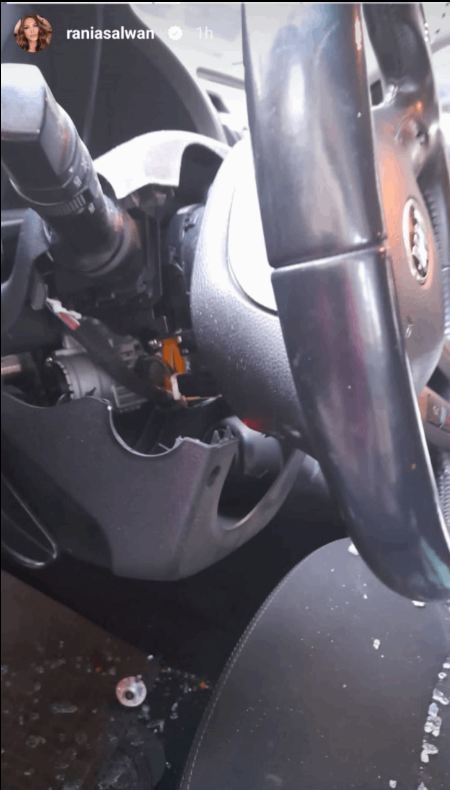 وأظهرت الصور زجاج السيارة المكسور، حيث حاول السارقون كسر المقود لسرقة السيارة، الا انهم لم يفلحوا في اتمام مهمتهم.