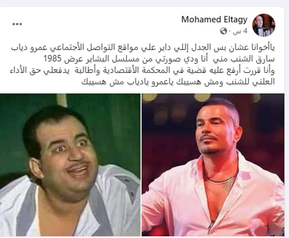وقد ارفق التاجي الصورة بالتعليق التالي: "يا أخوانا عشان بس الجدل اللي داير على مواقع التواصل الاجتماعي، عمرو دياب سارق