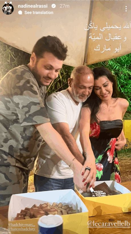 وشاركت نادين مع متابعيها على حسابها عبر خاصية القصص القصيرة على حسابها عبر انستغرام، صورة من اجواء الاحتفال، حيث ظهرت برفقة ابنها وطليقها وهم يقطعون قالب الحلوى.
