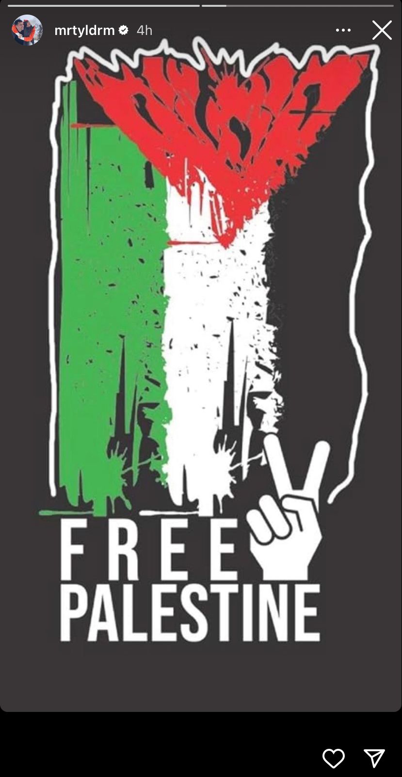 شارك مراد يلدريم صورة لعلم فلسطين عبر خاصية القصص الممصورة عبر انستغرام، وكتب عليها: "فلسطين حرّة".