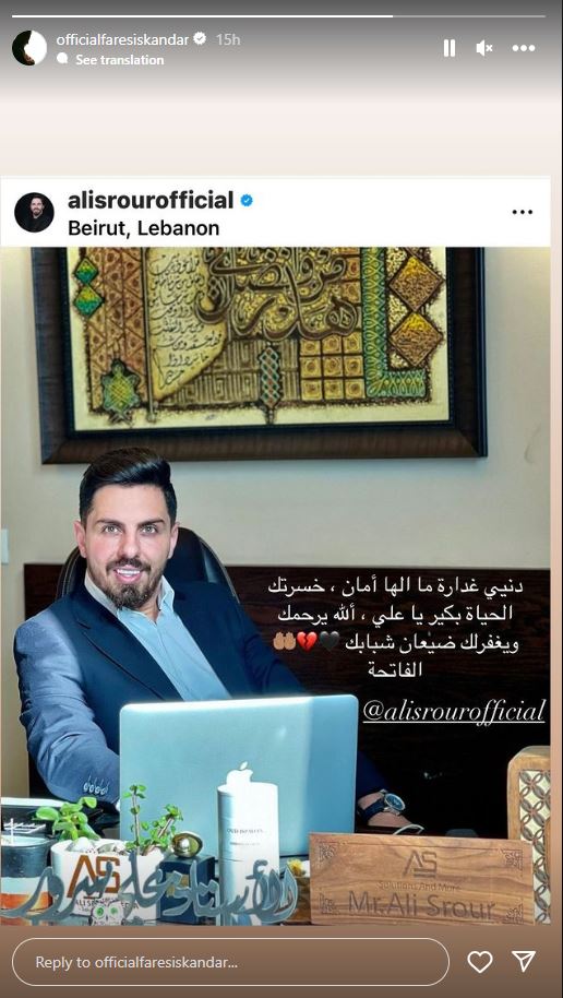 علي سرور من الشبان الذين عُرفوا بعملهم الدؤوب، كما كان شغوفاً به بشكل كبير، ما جعل اسمه يلمع في مجال "السوشيال ميديا" بسرعة كبيرة، وقد أسّس شركة خاصة به، وكان يطمح بأن يوسع عمله الى العراق ومنها إلى عدة دول، إلا أنّ القدر باغته بخطط أخرى.