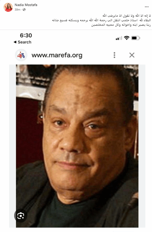 واعلنت الفنانة نادية مصطفى الخبر، على حسابها عبر انستغرام وقالت: "لا إله إلا الله، ولا نقول إلا ما يرضي الله.. البقاء لله أستاذ حلمي بكر انتقل إلى رحمة، الله يرحمه ويسكنح فسيح جناته، ربنا يصبر ابنه وإخواته وكل محبيه والمخلصين".