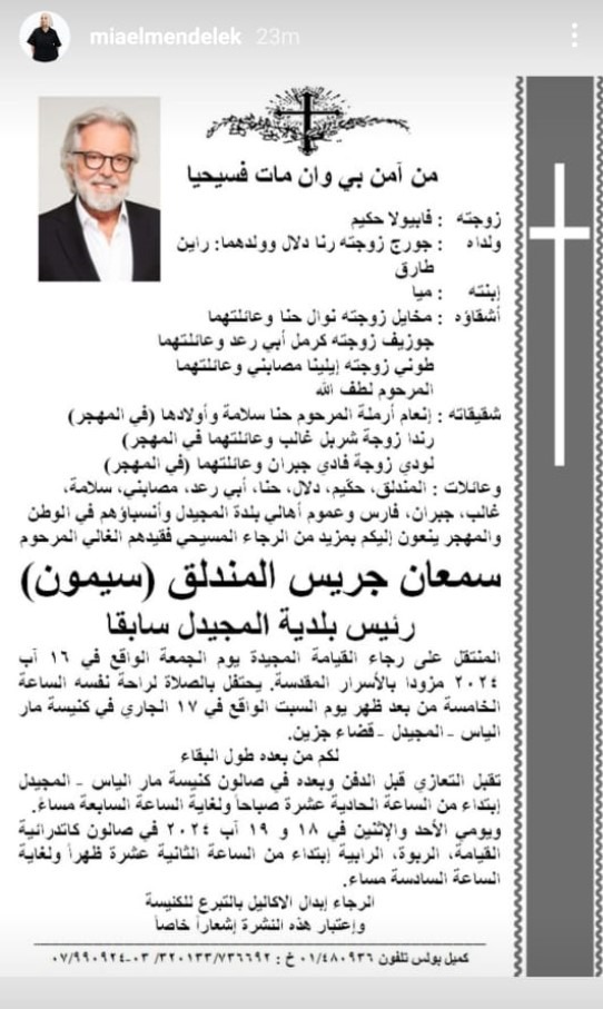 غيب الموت اليوم الجمعة مصفف شعر المشاهير اللبناني سيمون المندلق، وهو كان رئيس بلدية المجيدل سابقا.