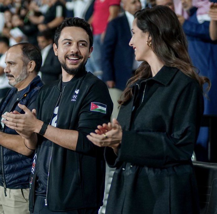 وحرص الأمير الحسين والأميرة رجوة على متابعة المباراة من مدرجات الملعب، حيث ظهرا في عدة لقطات وهما يتفاعلان بحماس مع الأهداف التي رفعت المنتخب الأردني إلى المركز الثاني في مجموعته.