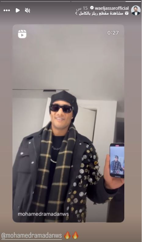 نشر الفنان وائل جسار مقطع فيديو عبر حسابه على "إنستغرام" لمشاركة مقطع تشويقي للفنان محمد رمضان، والذي كان قد نشره الأخير للإعلان عن أغنيته المرتقبة.