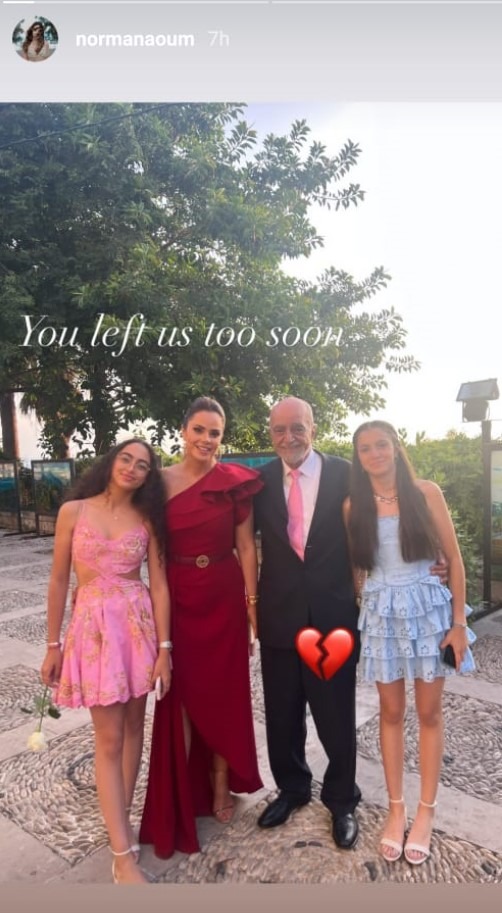 وفي التفاصيل، نشرت نورما صورة عبر خاصية القصص القصيرة على حسابها الخاص على تطبيق انستغرامجمعتها بوالدها وابنتيها. وعلّقت عليها بالقول: "رحلت عنا باكرا".