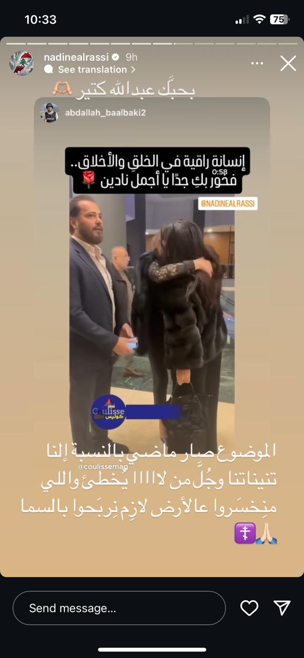 وقالت نادين في منشور على حسابها بموقع التواصل الاجتماعي "انتسغرام" مستخدمة خاصية القصص القصيرة: "الموضوع صار ورا ضهرنا تنيناتنا".