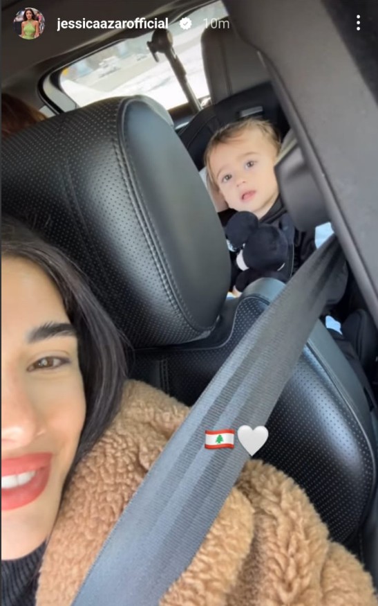 وفي التفاصيل، أطلت جيسيكا من داخل السيارة مع ابنها "فهد" وهما يستمعان إلى أغنية الفنانة إليسا الجديدة "حبك متل