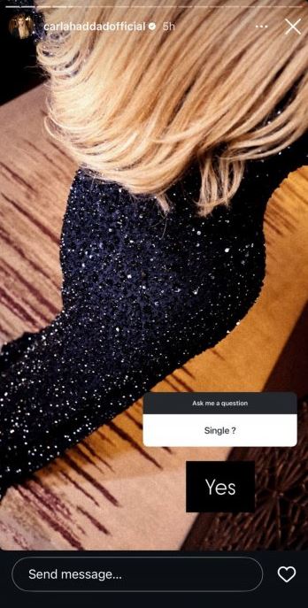 كارلا حداد على سؤال احد المتابعين الذي كتب لها باللغة الإنكليزية "سينغل"، أي "غبر مرتبطة"، لتفاجئه بردها قائلة "نعم".