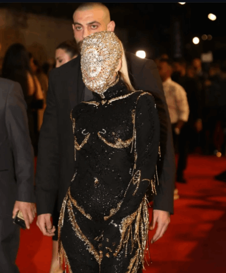 وظهرت باميلا الكيك بجمبسوت باللون الأسود مزيناً ببعض التطريزات الفضية، ووضعت قناعاً باللون الذهبي على وجهها، جعل من الصعب التعرف عليها في البداية، وذلك على طريقة الفنان المصري الشاب “تووليت”، وهو ما جعل الأنظار تتجه لها منذ وصولها إلى السجادة الحمراء.