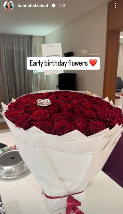 ونشرت هنا الزاهد باقة كبيرة من الورود الحمراء المزينة بالورق الأبيض وكشفت أنها هدية مبكرة بمناسبة عيد ميلادها، وحرصت على إخفاء هوية المرسل، ولكنها عبرت عن سعادتها بنشر صورة للباقة المميزة التي تلقتها.