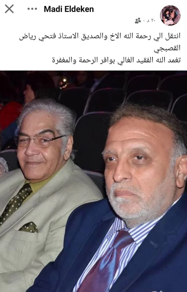 ونشر ماضي الدقن صورته مع الراحل عبر صفحته الشخصية في "فيسبوك"، وأرفقها بتعليق كتب فيه: "انتقل إلى رحمة الله تعالى الأخ والصديق فتحي رياض القصبجى، تغمد الله الفقيد الغالى بوافر الرحمة والمغفرة".