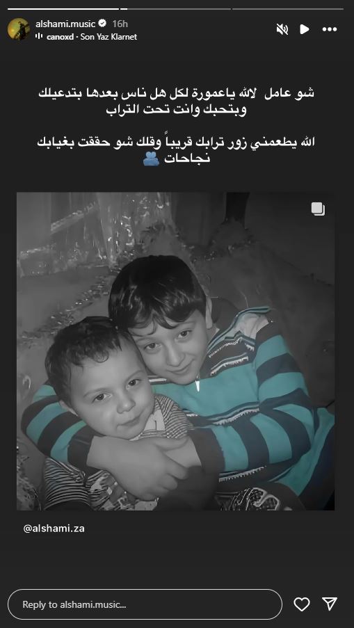 الشامي مع متابعيه عبر خاصية القصص القصيرة على حسابه عبر انستغرام، صورة قديمة جمعته بشقيقه الراحل عمر، وارفقها بتعليق ابكى فيه المتابعين، اذ كتب: "شو عامل لـ