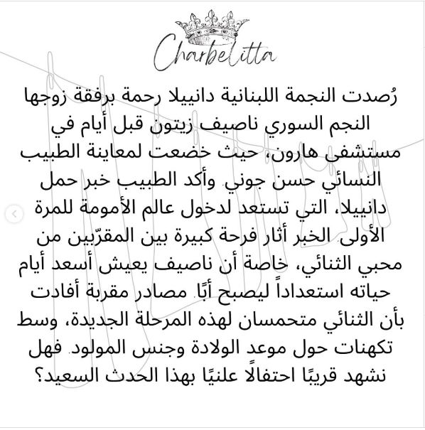 وقد اكد الطبيب ان دانييلا رحمة حامل بحسب ما افادت صفحة شربيليتا.