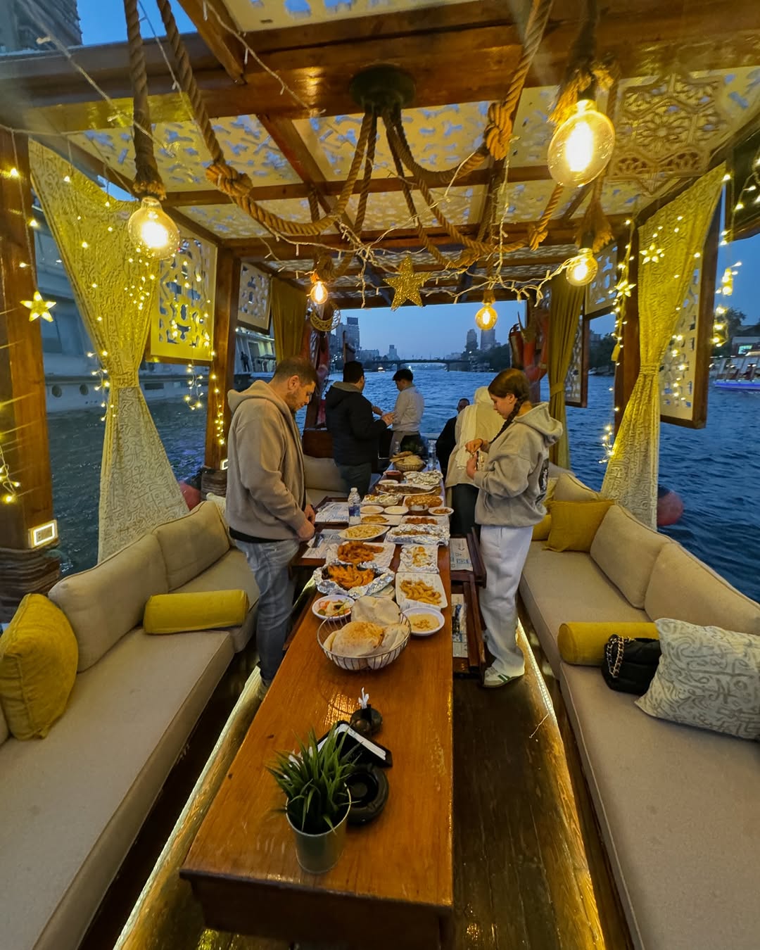 النيل وفي احدى الصور ظهرت برفقة زوجها حيث علقت قائلة: أنا و الحب و أجواء رمضان الساحرة في النيل .