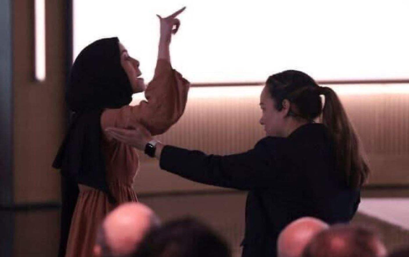 وعارضت "أبو السعد" استخدام الذكاء الاصطناعي في حرب غزة، مضيفةً "عارٌ عليكم، أنتم تستغلون هذه الحرب، توقفوا عن استخدام الذكاء الاصطناعي للإبادة الجماعية يا مصطفى، قبل أن يتم إبعادها من الفعالية.
