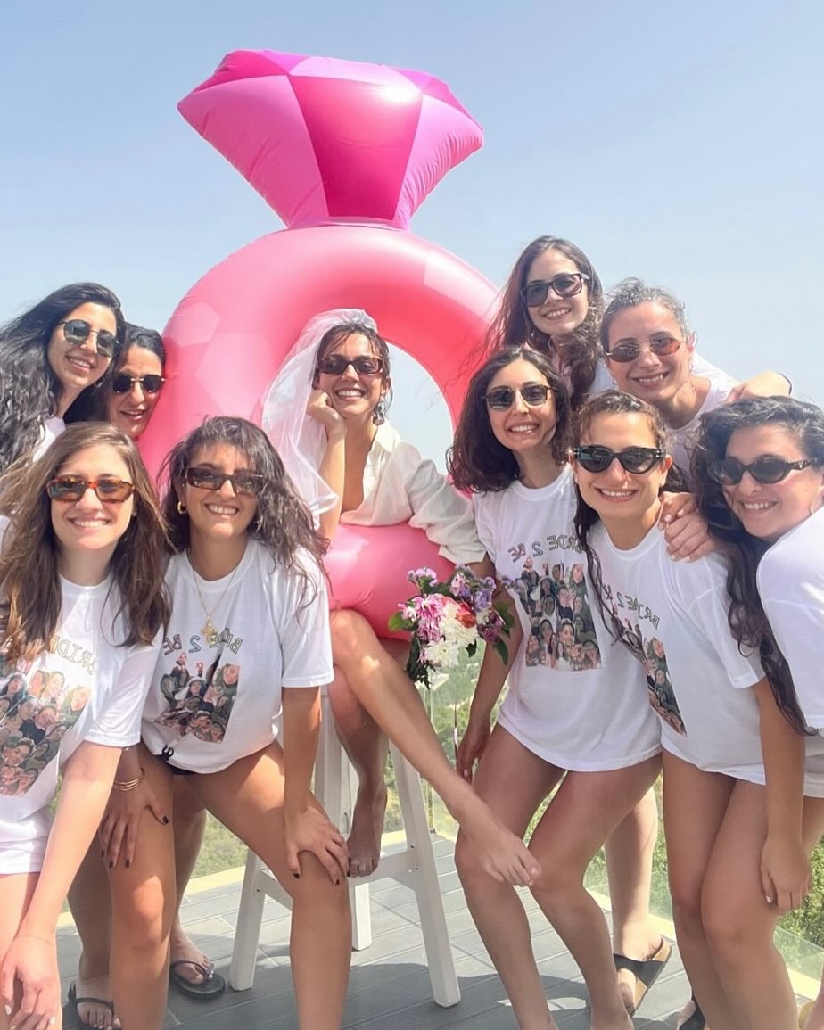 إنستغرام" لقطات مليئة بالحياة من حفل التوديع، اذ ظهرت بإطلالة مميزة مرتدية "روب ساتان أبيض وطرحة ناعمة"، وجالسة داخل بالون ضخم على شكل خاتم زواج، وكأنها تعلن بطريقة مرحة أن العد العكسي للزفاف قد بدأ فعلاً.