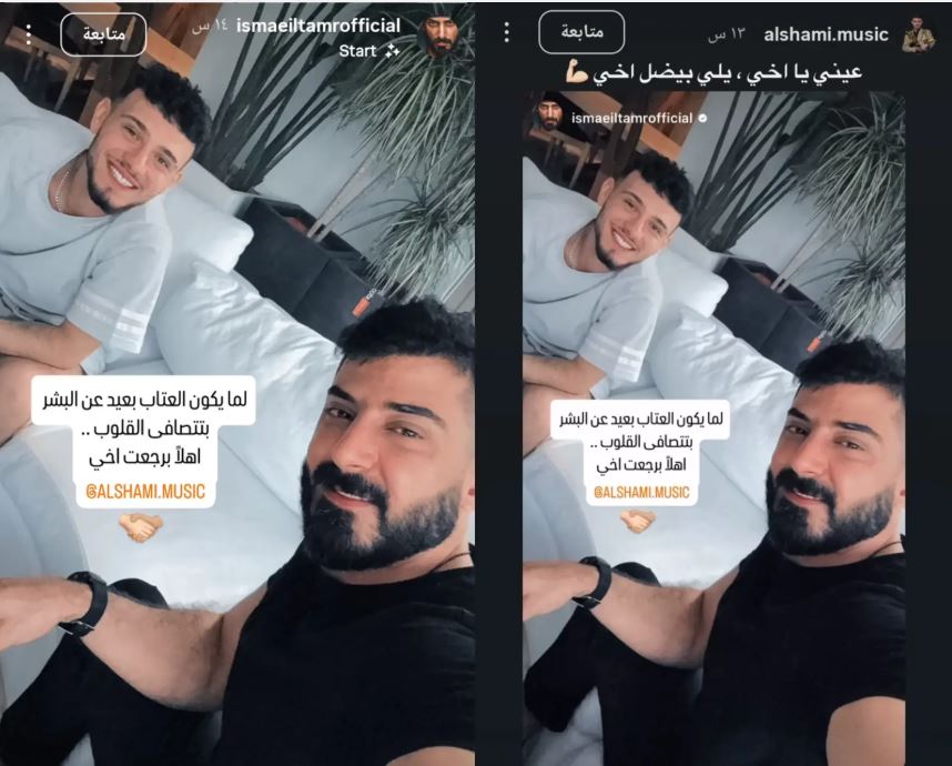 إنستغرام" صورة تجمعه بالشامي، وعلّق عليها بالقول: لما يكون العتاب بعيدا عن البشر بتتصافى القلوب، أهلاً برجعة أخي. وسرعان ما أعاد