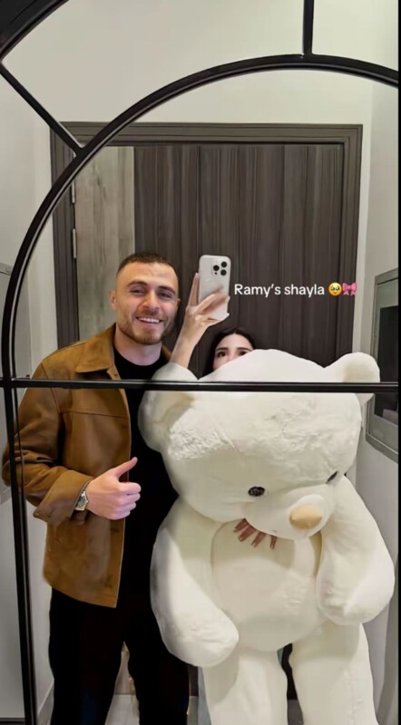 ولفتت الصور الأنظار، إذ ظهرت سيدرا فيها وهي تحمل دمية دب كبير، بينما ظهر رامي وهو يقف إلى جانبها بطريقة رومانسية لفتت الأنظار.