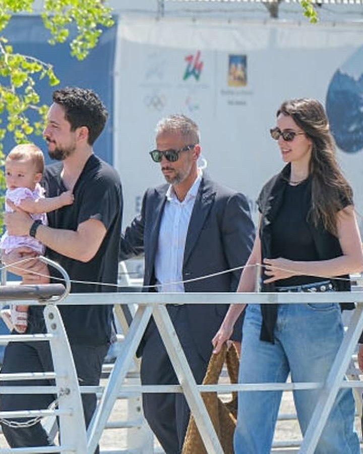 وظهر سمو الأمير الحسين بن عبدالله الثاني بإطلالة صيفية مريحة باللون الأسود، مؤلفة من تيشيرت وبنطلون أنيق، وكان يحمل طفلتهما، الأميرة الصغيرة إيمان، التي تألقت بفستان طفولي ناعم يجمع بين الأبيض والزهري.
