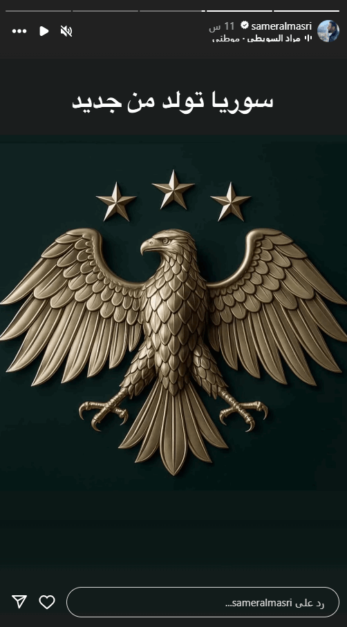 سامر المصري مع الهوية البصرية الجديدة لسوريا، حيث نشر صورة لها عبر خاصية القصص المصورة في صفحته الخاصة عبر انستغرام، وكتب:"سوريا تولد من جديد".