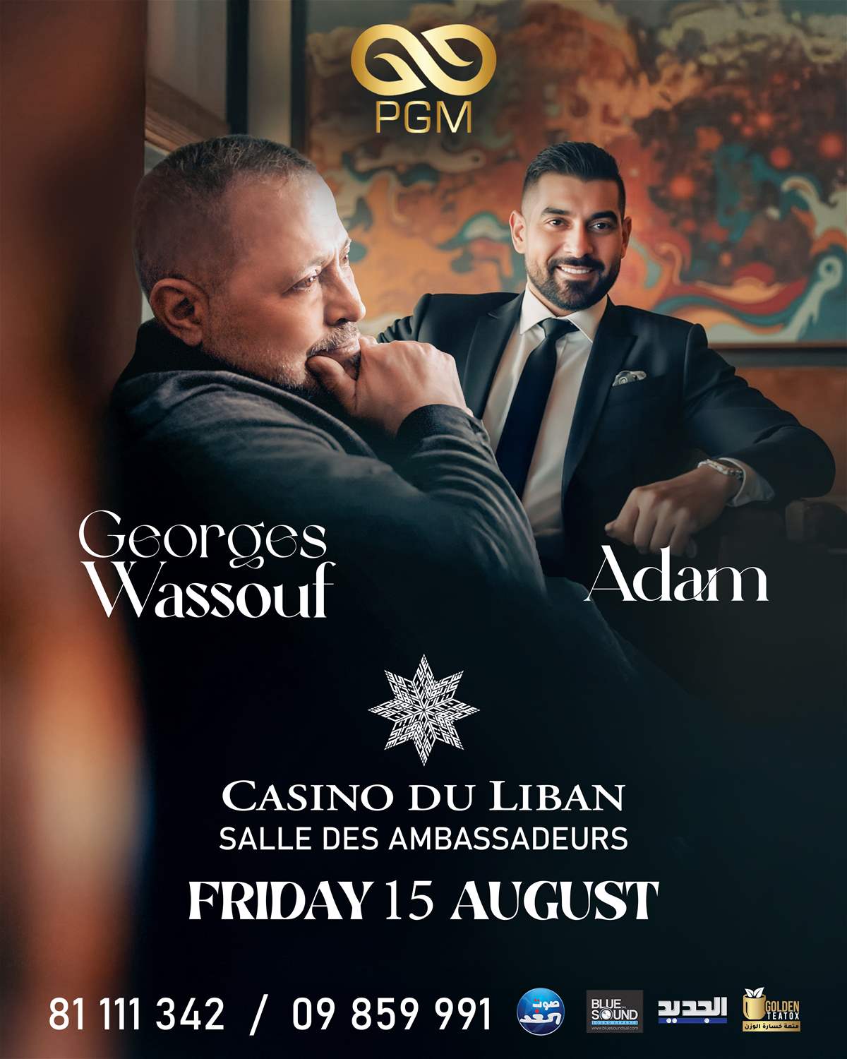 يحيي النجمان جورج وسوف وادم حفلا في كازينو لبنان بتاريخ الـ15 من الشهر المقبل، بتنظيم من شركة PGM وبرعاية حصرية لقناة الجديد.