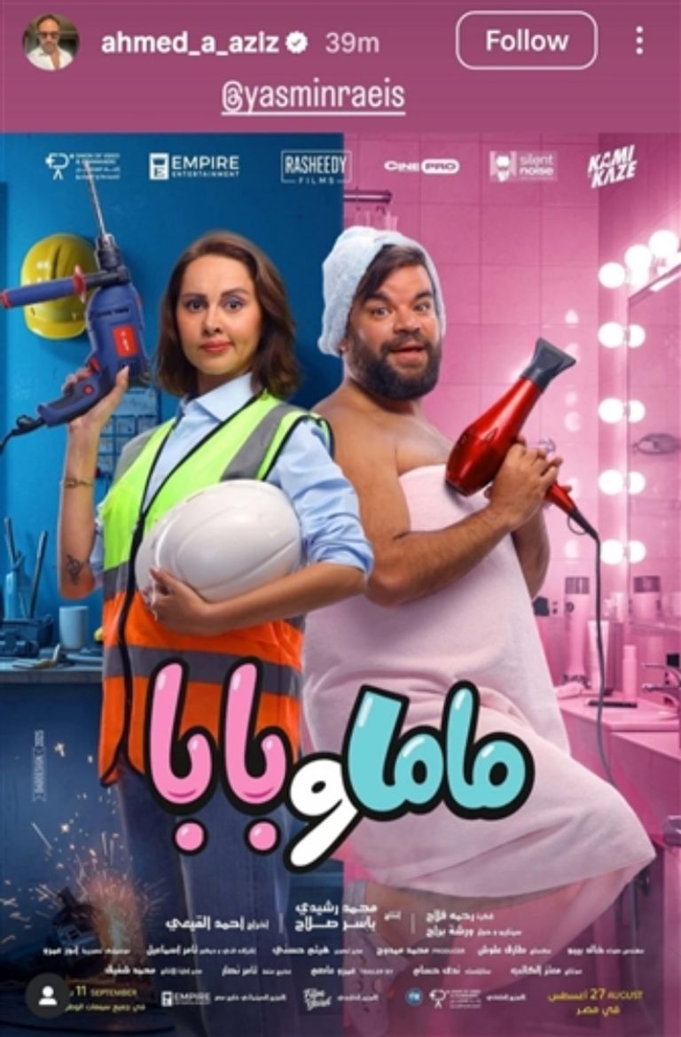 واختار عبد العزيز أن يرد بشكل غير مباشر عبر حسابه على تطبيق إنستغرام، إذ نشر صورة لبوستر فيلم "بابا وماما" الذي تقوم ياسمين ببطولته، في إشارة واضحة إلى وقوفه إلى جانبها قبل عرض الفيلم المرتقب.