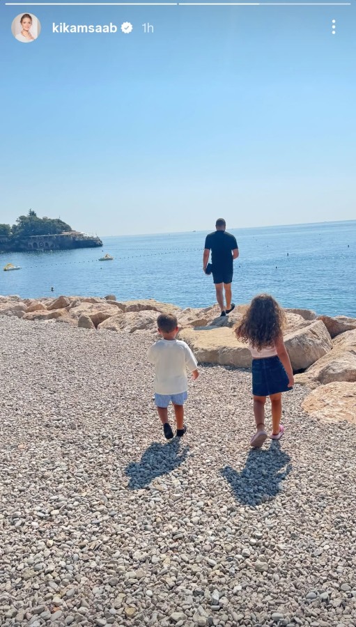 كما نشرت صورة لزوجها وولديهما من الخلف على شاطئ البحر، في