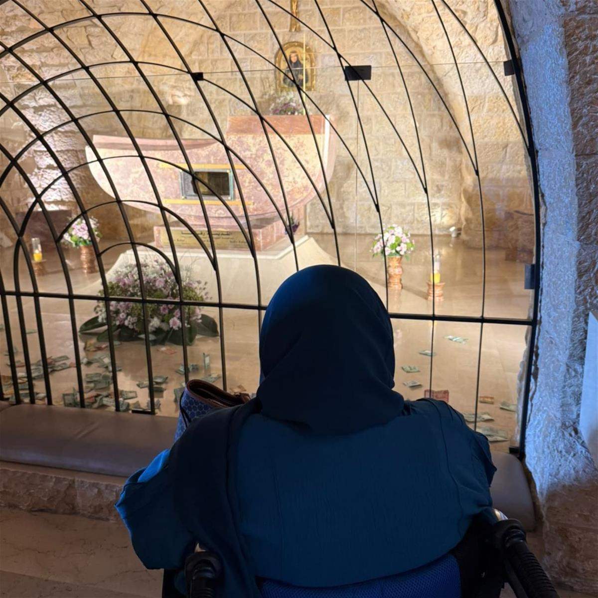 الفنانة التي تقيم منذ سنوات في الإمارات، حرصت خلال رحلتها الأخيرة إلى وطنها على التوجه إلى مزار القديسة رفقا في جربتا، حيث أدّت الصلاة وظهرت في لحظات روحانية خاصة.