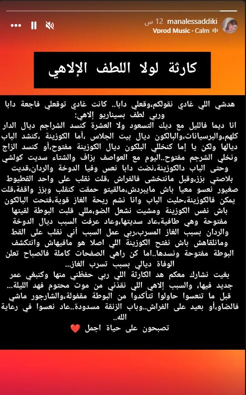 توجيه رسالة تحذيرية صريحة لمتابعيها، دعتهم فيها إلى ضرورة التأكد دائمًا من إغلاق قنينات الغاز بإحكام، خصوصًا قبل النوم أو مغادرة المنزل، وعدم الاستهانة بأي أعراض غير طبيعية قد تكون مؤشرًا على خطر خفي، مشددة على أن الوعي والانتباه قد ينقذان الأرواح، وأن لحظة إهمال واحدة قد تكون كافية لتغيير كل شيء.