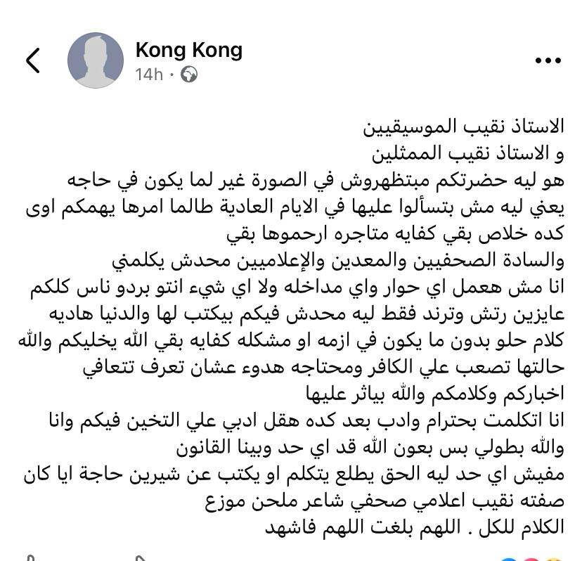 وأعرب شقيق شيرين عن استيائه الشديد من تدخل النقباء في التوقيت الحالي متسائلاً عن سبب غياب هذا الاهتمام في الأوقات العادية وظهوره فقط عند اشتداد الأزمات.