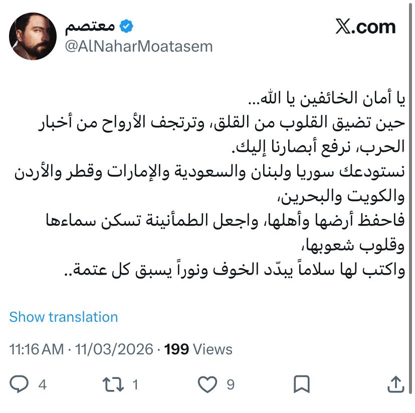 ولاقت الرسالة تفاعلاً كبيراً على منصات التواصل، حيث أعاد كثير من المستخدمين نشرها مرفقة بتعليقات تعبّر عن الأمل بانتهاء الحروب وعودة الاستقرار إلى المنطقة، مؤكدين أن الدعاء يبقى أحد أبرز أشكال التضامن المعنوي في أوقات الأزمات.