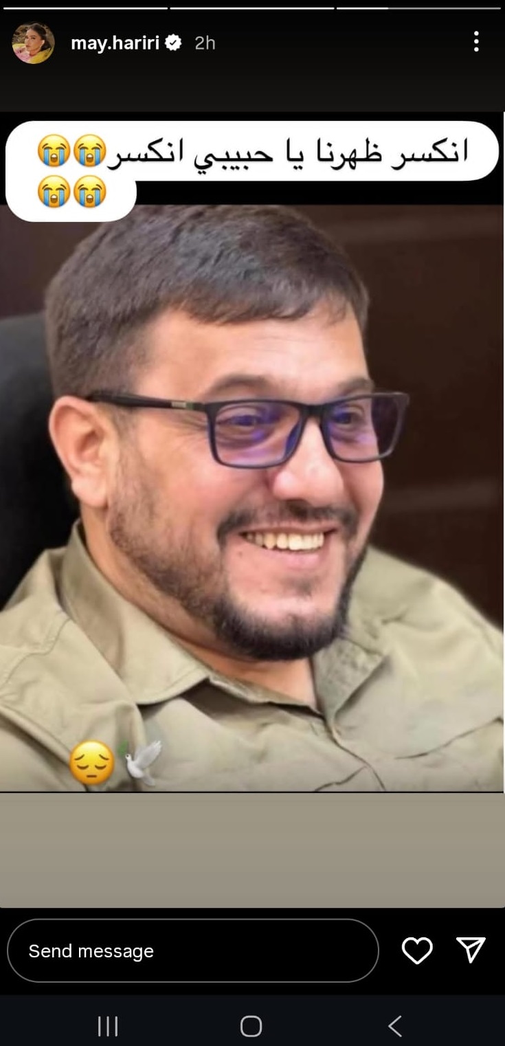 وفي التفاصيل، نشرت حريري عبر خاصية "ستوري" على إنستغرام رسالة نعي مؤلمة، كتبت فيها: "انكسر ظهرنا يا حبيبي انكسر"، في تعبير صادق عن حجم الصدمة التي تعيشها.