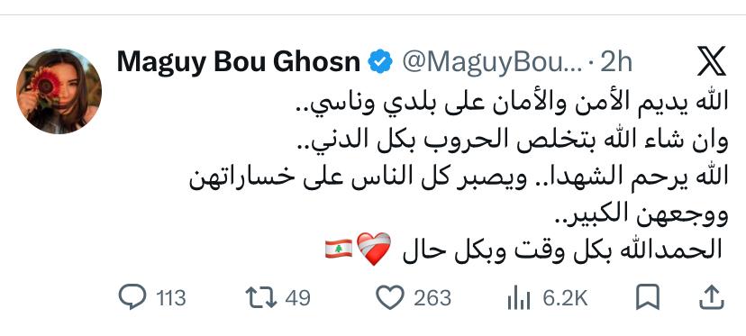 وتفاعل المتابعون بشكل واسع مع كلماتها، معتبرين أنها لامست مشاعر الكثير من اللبنانيين الذين يطمحون لطي صفحة الحرب والبدء بمرحلة جديدة أكثر أماناً.