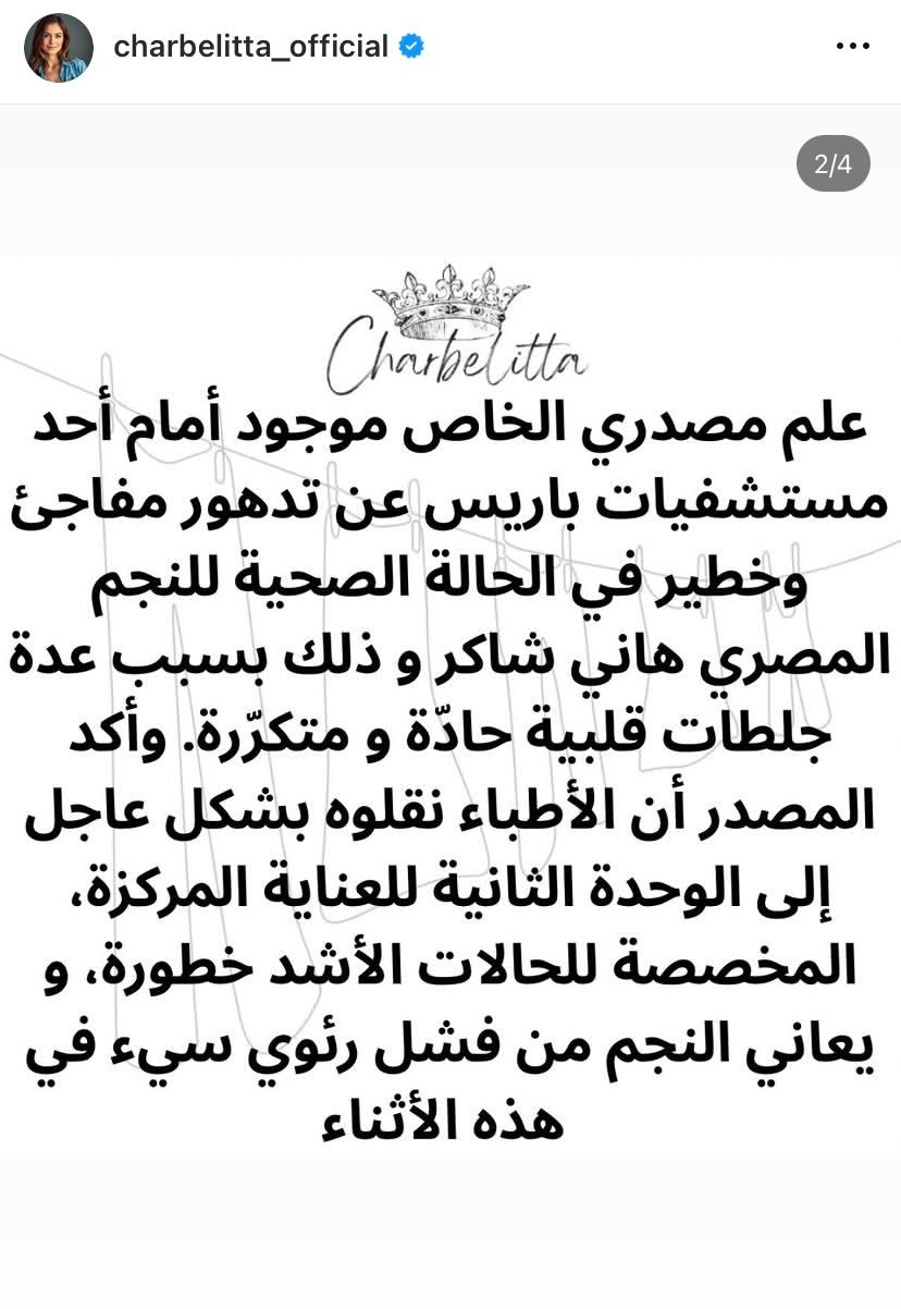 وفي التفاصيل، كشفت مصادر خاصة لصفحة “شربليتا” المتخصصة باخبار النجوم والمشاهير، من أمام أحد المستشفيات الكبرى في باريس، عن تعرض “أمير الغناء العربي” لانتكاسة صحية حادة نتيجة جلطات قلبية متكررة، ما أدى إلى نقله فوراً إلى وحدة العناية المركزة المخصصة للحالات الحرجة جداً.