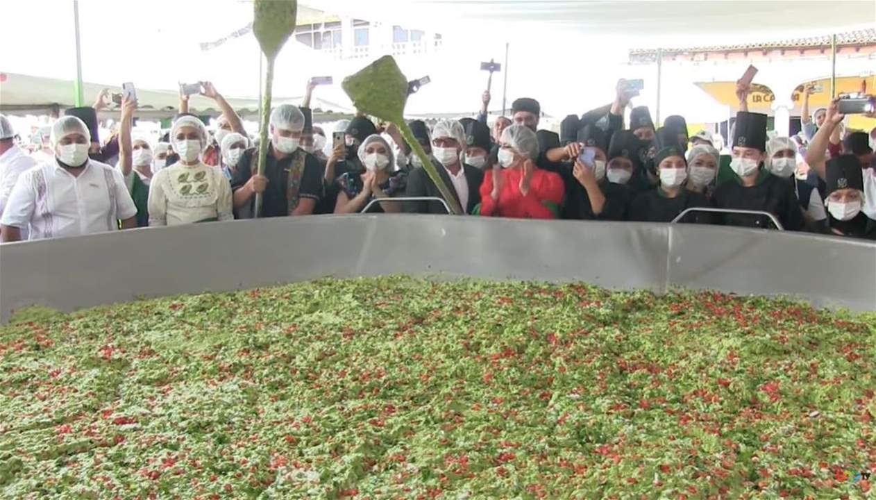 وأعد هذا الطبق الضخم حوالي 300 رجل وامرأة في بيريبان، واستغرق الأمر 3 ساعات و30 دقيقة فقط للحصول على 4970 كيلوغراما (حوالي 5 أطنان) من الـ"غواكامولي". وتم إعداد الطبق الضخم من 10 أطنان من الأفوكادو مع البصل والطماطم والفلفل والليمون والكزبرة.
