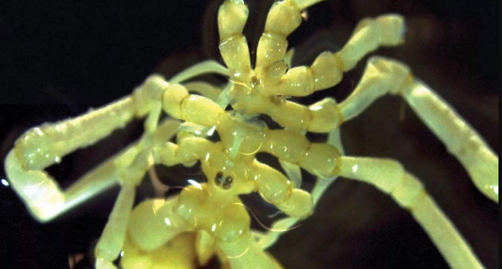 هذا الحيوان الذي لم يُشاهد من قبل هو عنكبوت بحري، وهو قريب بعض الشيء لسرطانات حدوة الحصان والعناكب التي تعيش في قاع المحيط، وتأكل من خلال خرطوم يشبه القش بدلاً من الفم، وتتنفس من خلال أرجلها. وقد اكتشف العلماء أكثر من 1000 نوع من العناكب البحرية في جميع أنحاء