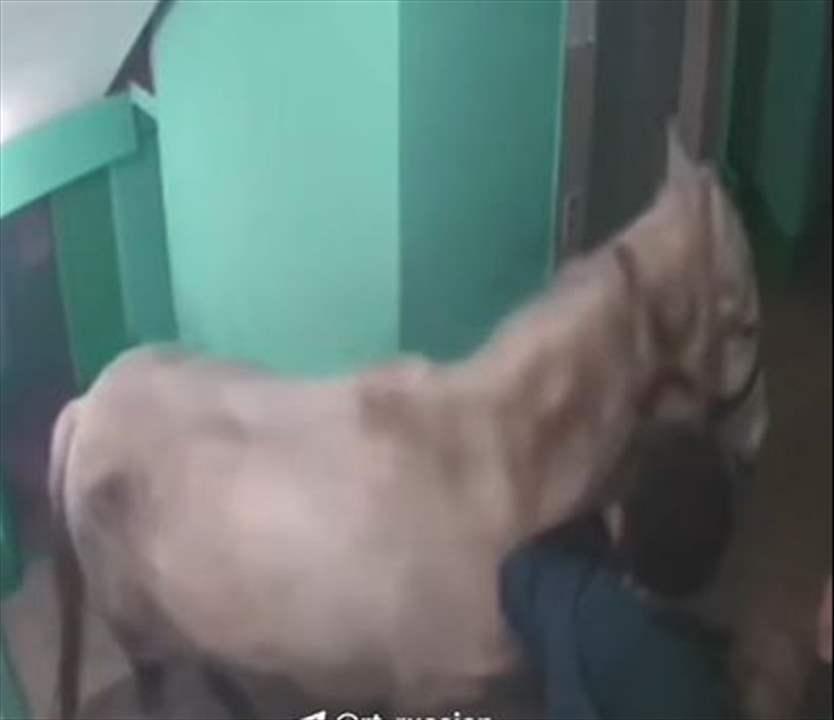 تفاجأ سكان أحد المباني في ضواحي كيميروفا الروسية عندما عاد أحد السكان ومعه حصان أراد اصطحابه إلى شقته.