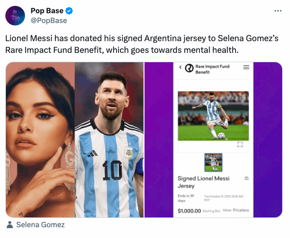 وفي حين رجحت بعض المصادر أن يكون اهتمام ميسي بالحدث مرتبط بدعمه لهدف الجمعية الأساسي الذي يتمثل بمتابعة جميع الأزمات المرتبطة بالصحة النفسية، أشارت مصادر أخرى إلى أن هذه الخطوة تأتي في إطار تقديره لـ سيلينا، بعدما كانت من أوائل الحاضرين في مباراته ضمن الدوري الأميركي لكرة القدم، بين