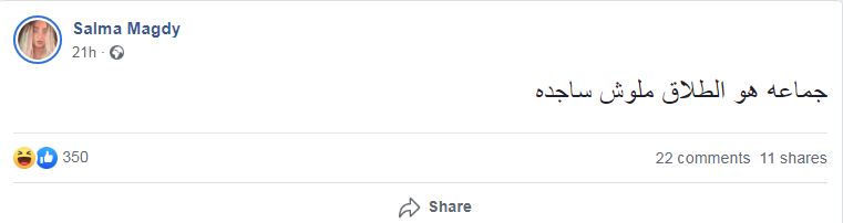 فيسبوك: "جماعة هو الطلاق ملوش سجدة"، قاصدة بذلك ريم زوجة