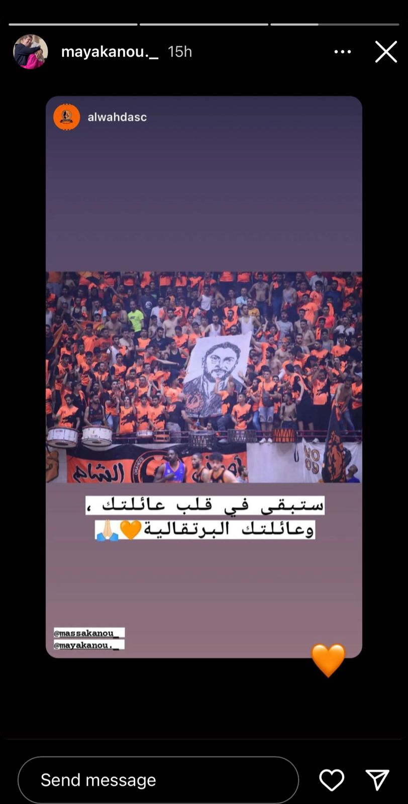 وفي هذا السياق، استذكر نادي رياضي سوري الراحل الفنان محمد قنوع، عبر خاصية القصص القصيرة على "انستغرام" واستعرض صور لمشجعيين في النادي مستخدمين صورة كبيرة للراحل، وعلق النادي: "ستبقى في قلب عائلتك، وعائلتك البرتقالية"، وارفق اسمه ابنتيه في المنشور عن طريق "التاغ" لهما.