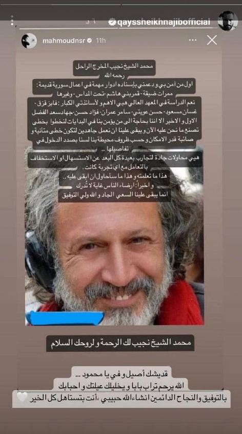 وفي الختام، أشار محمود نصر إلى محاولاته بعدم الاستسهال في تجاربه وأدواره، قائلا: "هي محاولات جادة لتجارب بعيدة كل البعد عن الاستسهال أو الاستخفاف بالتعامل مع أي تجربة كانت، هذا ما تعلمته وهذا ما سأحاول أن أبقى عليه"، خاتما رسالته بالقول: "وأخيرًا، إرضاء الناس غاية لا تدرك، إنما يبقى علينا السعي الجاد والله ولي التوفيق، محمد الشيخ نجيب لك الرحمة ولروحك السلام".
