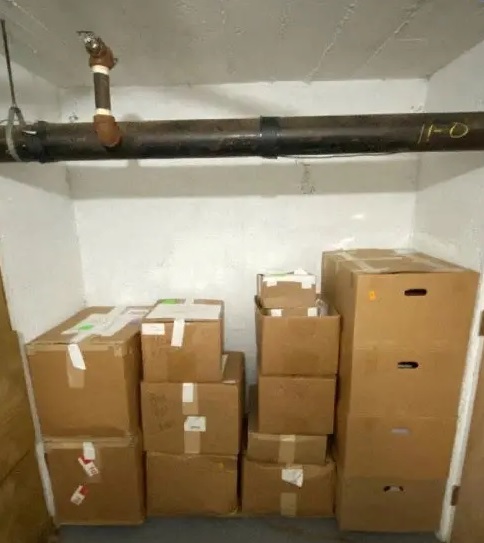 وتضم لائحة الاتهام صورة تُظهر أكواما من الصناديق داخل حمام كبير.