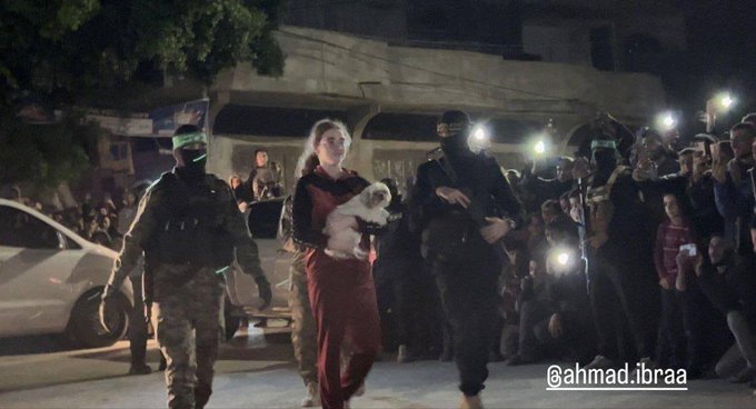 جديدة من الأسرى الاسرائيليين الذين أفرجت عنهم حركة حماس وقد توجهوا من معبر رفح في جنوب قطاع غزة إلى الكيان الاسرائيلي .