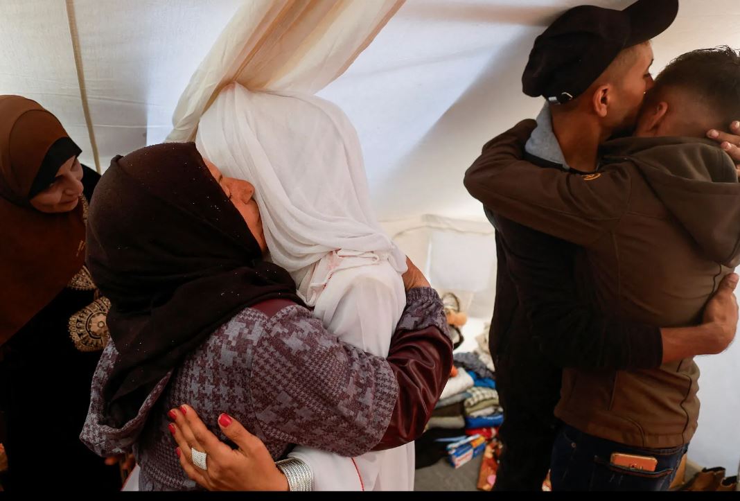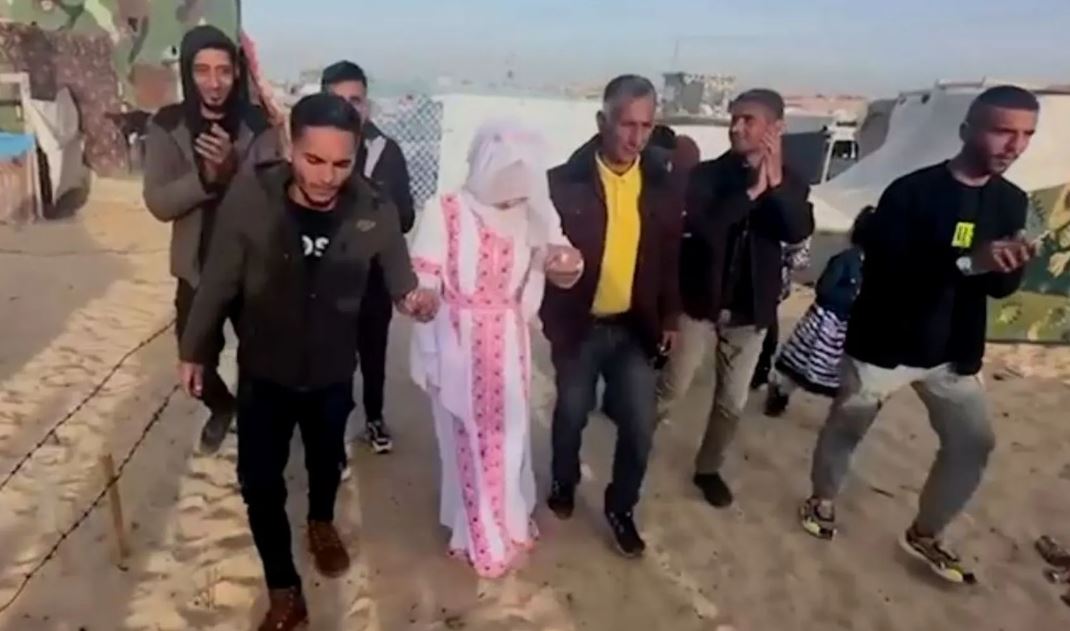 وقال العروسان إن منزلي أسرتيهما دُمرا جراء الغارات الجوية الإسرائيلية، وإن كلتا العائلتين فقدت أقارب لهما في القصف.