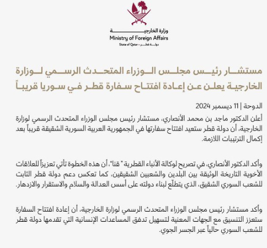 إعادة إفتتاح السفارة القطرية في سوريا قريبا