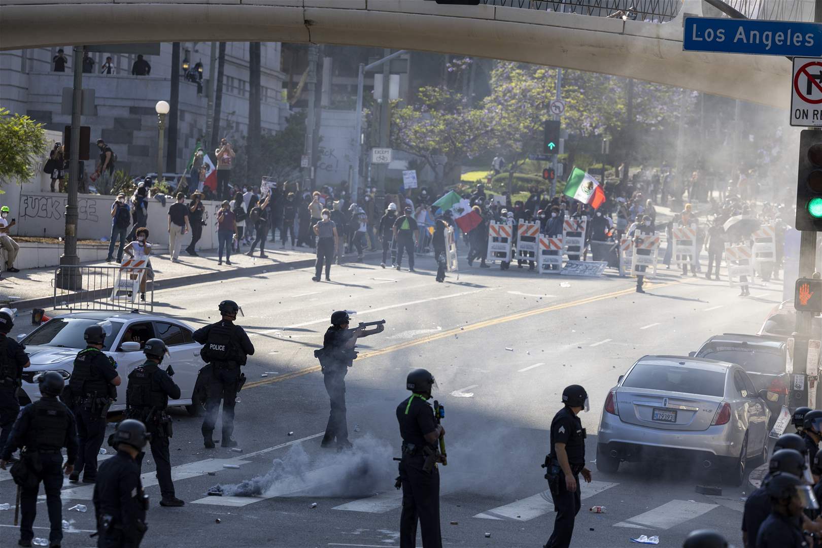 وانطلقت شرارة الأحداث بعد ظهر الجمعة، عندما نفذت السلطات عمليات مداهمة واسعة في أنحاء لوس أنجلوس واعتقلت أكثر من 40 شخصًا، مما أثار اشتباكات بين الشرطة والمتظاهرين وتحول الوضع إلى أعمال عنف مع استخدام قنابل الغاز المسيل للدموع ضد الحشود.