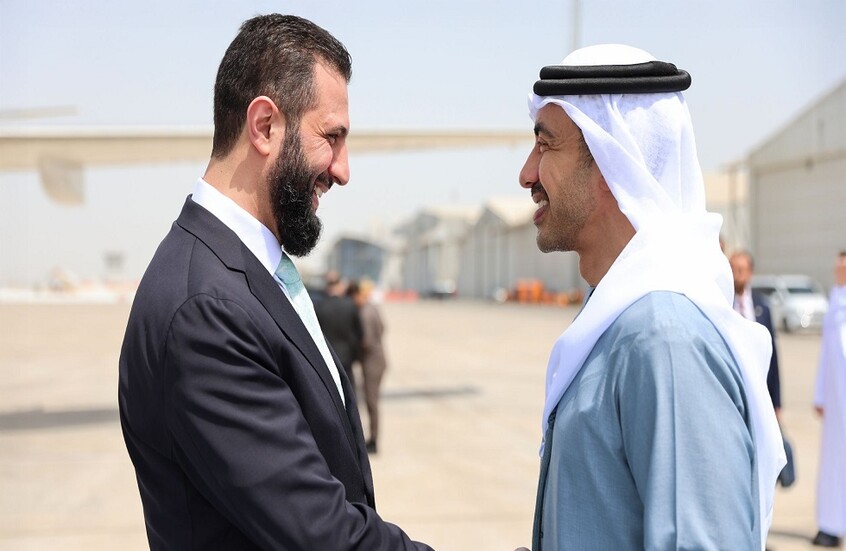 وقالت الرئاسة السورية إن الشيخ عبدالله بن زايد آل نهيان نائب رئيس مجلس الوزراء وزير الخارجية الإماراتي كان في استقبال الشرع والوفد المرافق له.