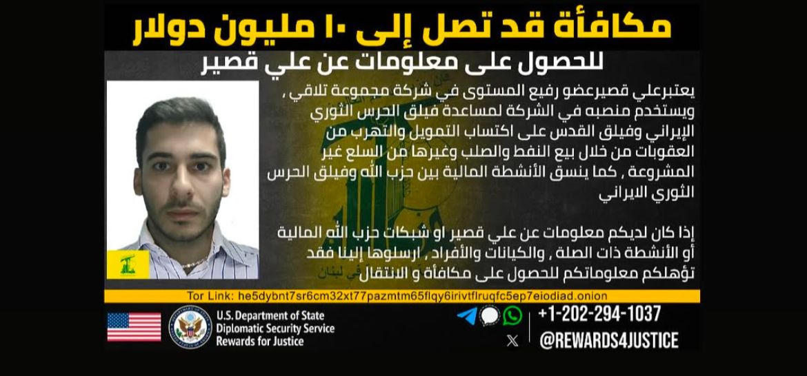 وتشير واشنطن إلى أن قصير، ممثل الحزب في إيران، يلعب دوراً محورياً في تسهيل الأنشطة المالية والتجارية المشتركة، ويعمل بشكل وثيق مع عمه القيادي في الحزب محمد قصير.