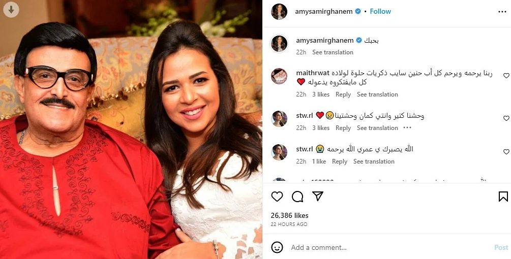 وانهالت تعليقات المتابعين ونجوم الفن والمشاهير، موجهين دعوات الرحمن والمغفرة للفنان سمير غانم، وزوجته الفنانة